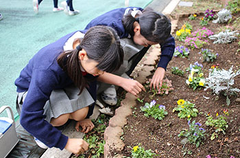 | 栽培 | 植物の栽培計画を立てたり、草むしりなどの手入れをしたりします。 季節ごとにきれいな花が咲く花壇は、学校を明るくしています。 |