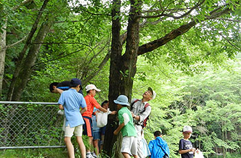 3年生は高ボッチ高原をハイキングします。見晴らしのよい景色に心も晴れやかになる子どもたち。美味しい空気をたっぷりと吸い込みながら、友だちと一緒に楽しく歩きます。4年生は地元の林業センターを見学し、森の中の散策を行います。昆虫やセミの抜け殻などを見つけながら、豊かな自然の中で楽しいひと時を過ごします。