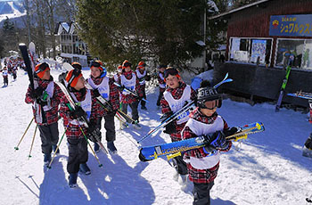 一人ひとりの経験値によってレッスン班を分け、3日間、現地のインストラクターの指導を受けながら技術の向上に努めます。スキーが初めてという子も、スキーブーツの履き方から一つひとつのことを学び、最終日にはゆるやかな傾斜を滑ることができるまでに上達します。菅平高原スキー場はコースが多いため、上級者の班から少しずつ遠くのコースに挑戦していきます。
