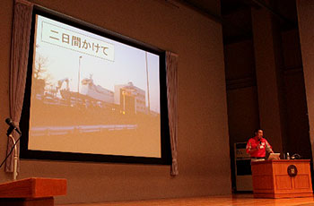 日本赤十字社の方に実際に震災後の現場で経験したことについての話を伺い,災害の現場でどんなことが起きているのかを学びます。報道だけでは分からない現場の声に耳を傾けることで,普段の生活の中で気をつけるべきことが見えてきます。