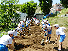 農園活動は、労作をいとわず切磋琢磨しながら成長してほしいという開校当初のねらいを基盤に活動を行っています。1年生からテラスでの栽培活動が始まり、2年生から農園での作物栽培へと移行するなど、段階を踏みながら栽培学習を進めています。土に触れること、作物の生長を見守ることは、心のゆとりや人に対する優しさを自然との関わりの中から身につけていくよい機会です。農園活動を通して、情操を豊かにし、自ら進んで世話をする態度を育て、試行錯誤をしながら生産する喜びを感じ取ってもらいたいと考えています。