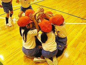 表現の授業では一人ひとりの「表現力」の育成に力を入れています。音やリズムに合わせた動きや、自分の感じたこと、考えたことを、身体をつかって表す活動を繰り返し行います。身体と十分にコミュニケーションをとります。自分の心と身体と十分に向き合うことで、自分の気持ちに気づいたり、身体をつかって気持ちを表現したりすることができるようになります。次第に、相手の気持ちを受け止め、共感する心が育ちます。
